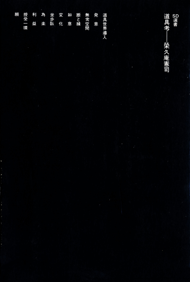 SD選書 42 『道具考』 (鹿島出版会)榮久庵憲司著 SD選書 42 『道具考』 榮久庵憲司著 204p / 19cm / B6判 発行:鹿島出版会 (1969/11/05 出版) 価格:780 円(税別) Books Index