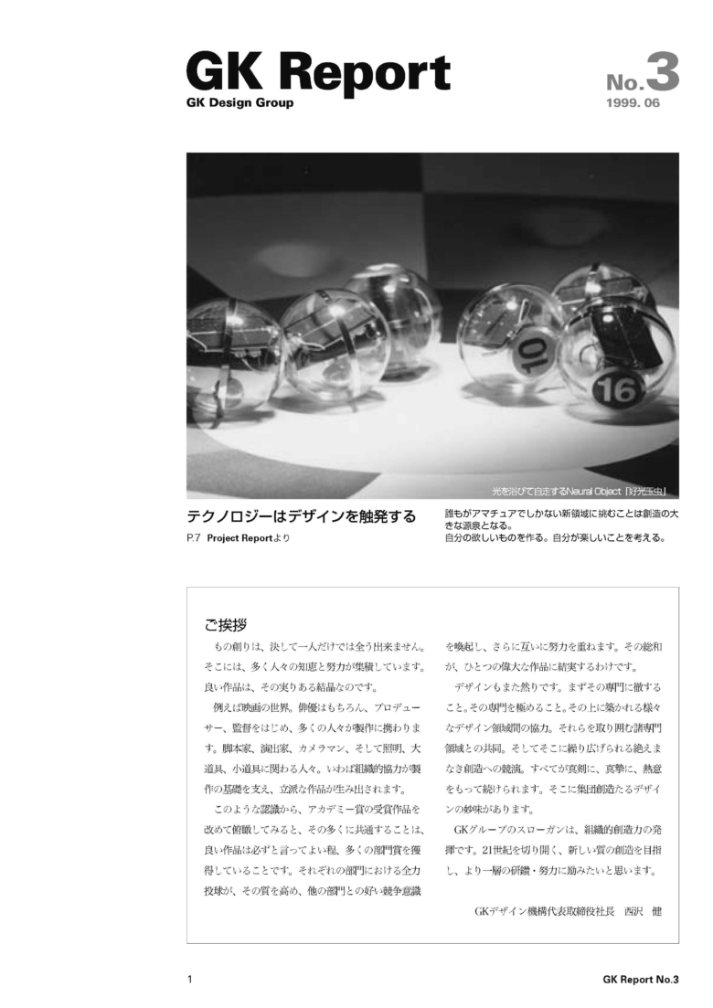Preview PDF 1 MB No.3 / 1999.06 Special Theme 21世紀のGKグループ──組織的創造力のめざすもの 栄久庵 憲司 Today's Eye 次世代の環境共生型社会に向けて 清水 尚哉 デザインとテクノロジー特集 21世紀のネットワーク社会の可能性 竹村 真一 テクノロジーはデザインを触発する 岩政 隆一 京都府陶磁器バーチャル美術館 木田 豊 ハイエンド3次元CADのユーザインタフェースデザイン 五十嵐 稔 デザインはどこまでホワイトボックス化できるのか? 井原 恵子 World Report Design for the World 始動する 問いを生み出す創造環境──米国先端科学技術の裾野 伊坂 正人 People & Activity GK学校、いよいよ開校 Column デザイン真善美 栄久庵 憲司 Prev Page Next Page GK Report Index
