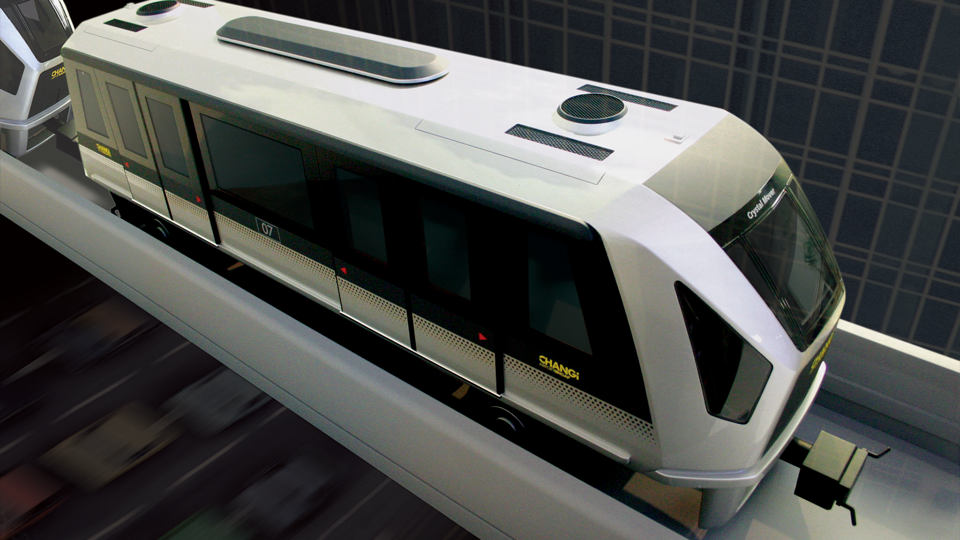 ガイドウェイ方式の軌道をコンピュータ制御で自動走行する中量輸送システム(APM=オートマテッド ・ピープル・ムーバー)。国際空港のターミナル間の移動やニュータウンの移動を主とする三菱重工の国際戦略車両。クリスタルカットをイメージさせる独特のフォルムがこの車両のアイデンティティとなっている。Crystal Moverは、フェイス部と内装を変えることで、多様なニーズに対応することが出来る。チャンギ国際空港向けCrystal Moverの個性的なデザインは新たな空港の顔となった。