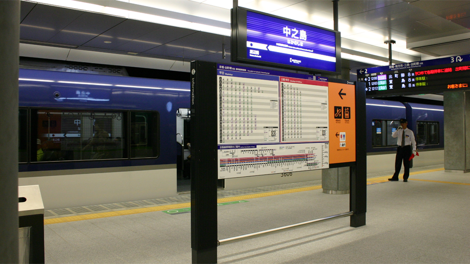 商業都市大阪と古都京都を結ぶ京阪電鉄。新型車両3000系の登場を機に、車両のデザインコンセプトを沿線の特徴から導き出した「風流の今様」と定めた。京阪特急伝統の赤黄に新たにゴールドのラインを配した車両を「エレガントサルーン」、新型3000系を濃紺と白にシルバーのラインを配した「コンフォートサルーン」、ロングシート配列の準急/普通運用の通勤車両を京阪伝統の緑と新たにクリーンな白、フレッシュなグリーンの帯を配した「シティコミューター」と3タイプの車格を明快に表現したカラーデザインに全編成リニューアルした。車両のリニューアル以前から進めている駅サインやファニチャー類のデザインも、一貫した世界観を創り、利用者の移動の質を高め、京阪ブランド、沿線ブランドの向上に貢献している。