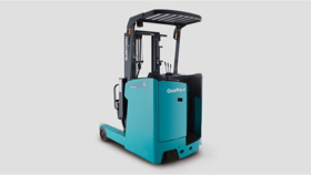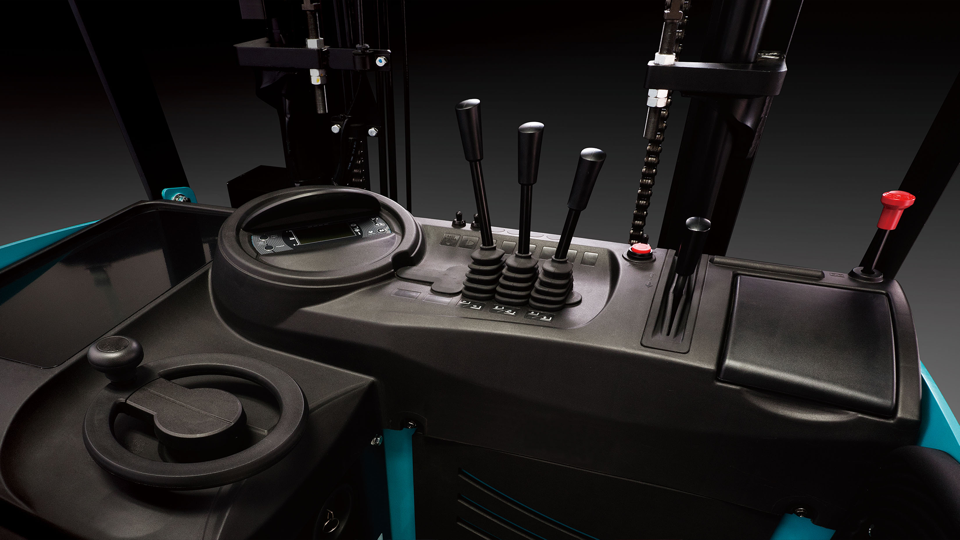 狭い倉庫内での使用や、いつでも素早く使えるようにオペレーターが立ったまま操作するリーチフォークリフト。人と一体となるマシンであり、思い通りに操る道具として徹底的なエルゴノミクスデザインが求められる。毎日休まず使われる道具とし「壊れにくさ」も重要だ。QuaPro-Rの各部に施した波紋パターンのデザインはクルクルとスムーズに旋回するイメージを視覚化したものであるが、この扱いやすさこそ、このリーチフォークリフトにとって大切にすべきテーマだと考える。