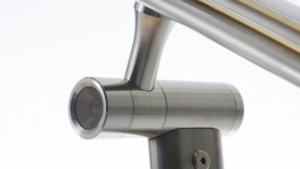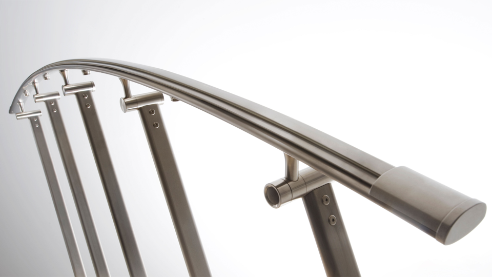 西欧の「光」の文化に対して、日本は「影」の文化と呼ばれています。まばゆい光よりも、落ち着きのある情緒的な「あかり」を愛した日本人。RAYSTREAMでは、日本人の美意識に訴えかける「あかり」の演出を目指した。まず、来訪者への「もてなしの心」「迎賓の心」の表現として、手すり部分のスリットからこぼれるあかりが、月を思わせる美しい円弧を描き、敷地入口から玄関までを情緒的に誘導。また支柱に内蔵されたセンサーによって、近づく人の気配を感知し、来訪者の足元を優しく照らす。本体の素材として使用したステンレスは、建物の風格を高め、錆びや汚れに強く、長年その美しさを保つ。このステンレス製三層構造のカーブ形状は、自動車で培われた片山工業のロールフォーミング技術でしかできないオンリーワンの製品となっている。