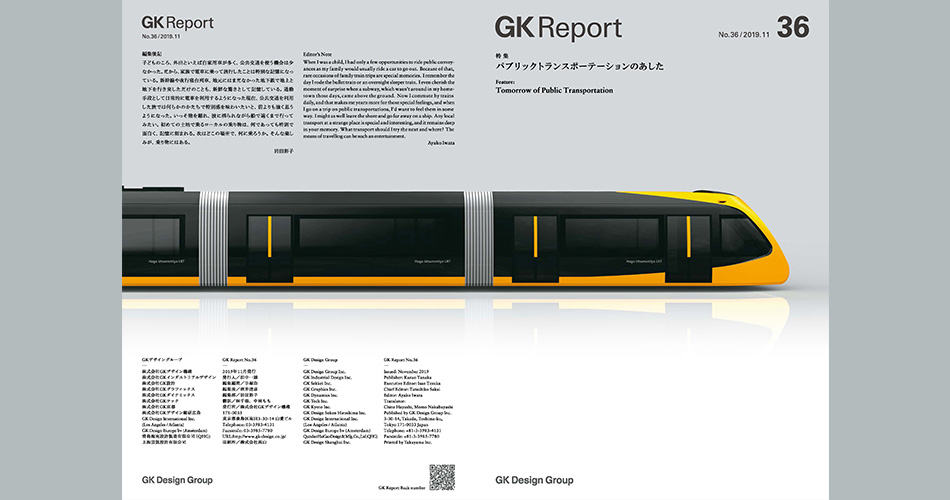 2019/12/01 NEWS GKReport vol.36 was issued. GK Design Group Magazine “GK Report vol.36” has been published. The feature of this issue is “Tomorrow of Public Transportation”. Please see from the following link. →GK Report Back number Topics Index
