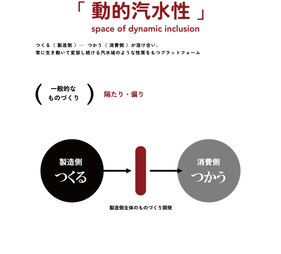 当り前のように分けられてきた「つくる」側と、「つかう」側の関係が溶け合う、本心から喜べる新たなものづくりの仕組みに挑戦しています。