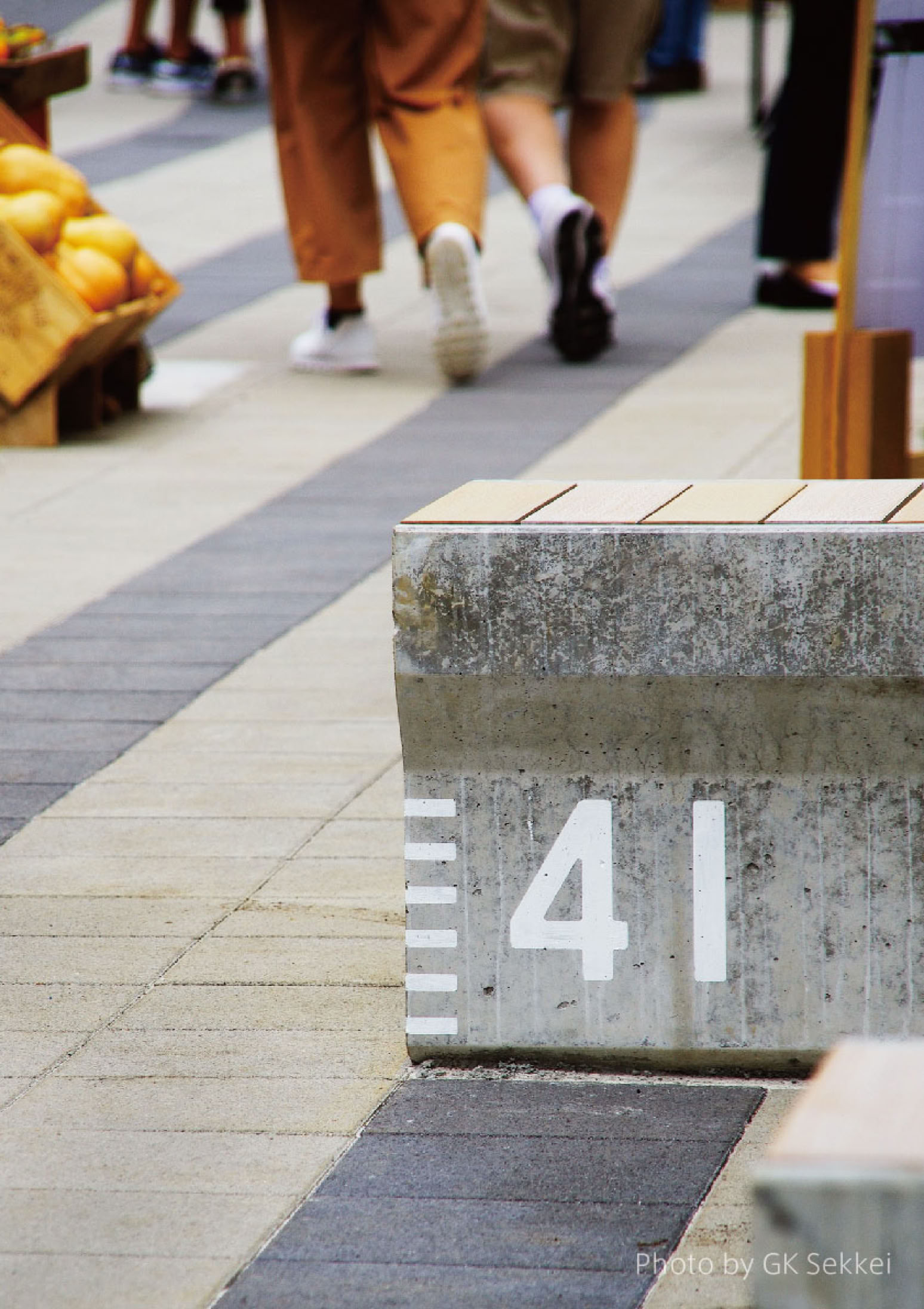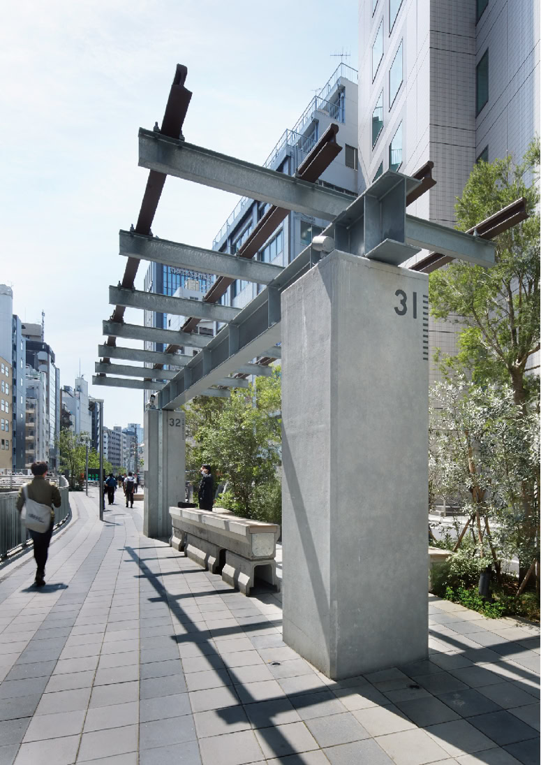 旧東横線渋谷駅のホーム・線路跡地等を利用した、大規模複合施設「渋谷ストリーム」と、渋谷川沿いの遊歩道「渋谷リバーストリート」の鉄道の記憶を活かしたサイン計画。 かつて線路を支えていた高架柱の管理用のナンバリングを、場所の記憶として表出させた。環境演出としての要素とイベント開催や待ち合わせ場所等の目印としての機能も有する。 書体は、鉄道の車両番号等に用いる数字を参照し、手書きで検証を重ね、丸く膨よかで、温かみのある鉄道らしい表情とした。