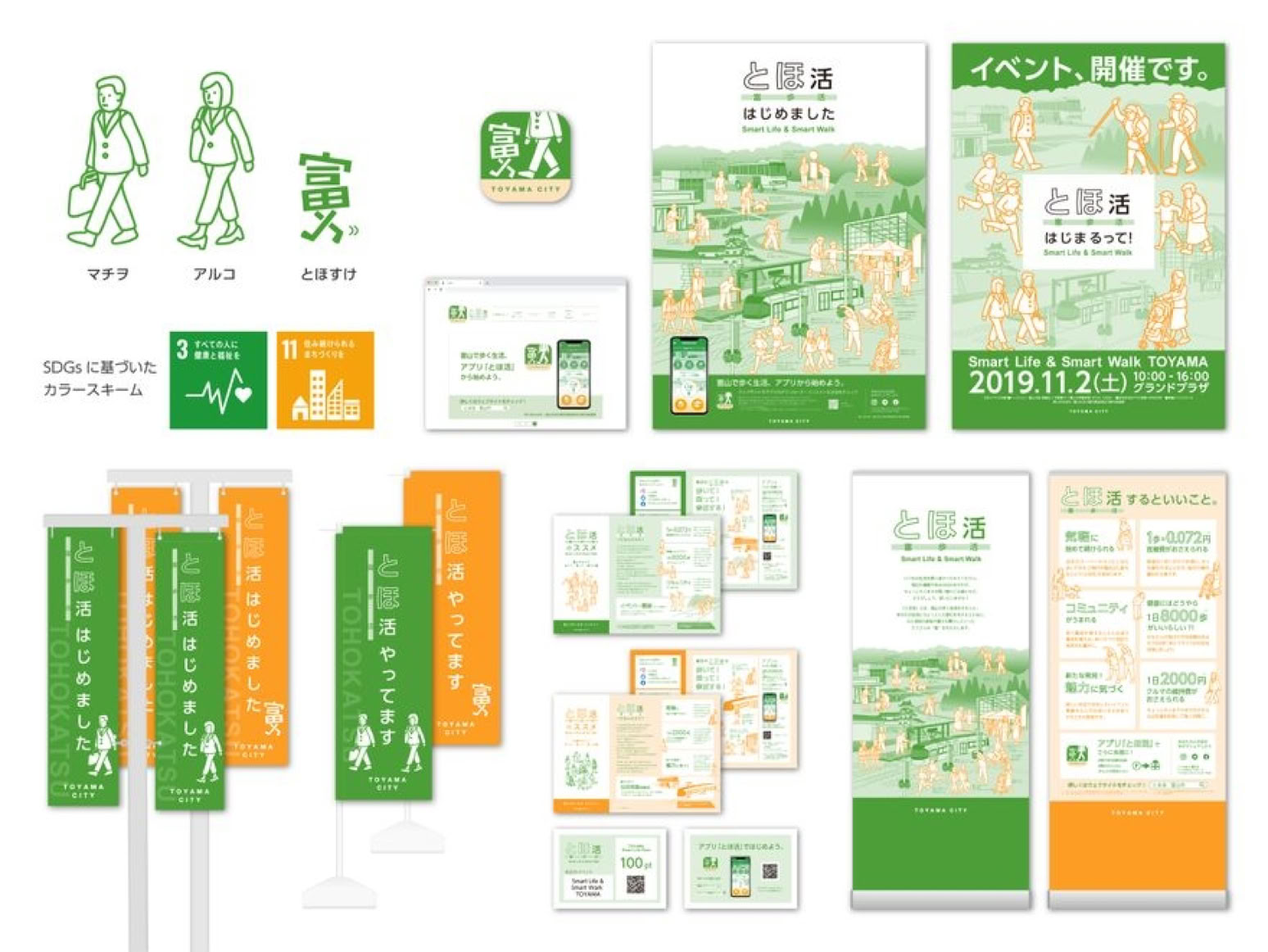 GK設計は、GK京都と共同で歩くライフスタイル啓発事業において、「とほ活」のキービジュアルをはじめ、様々な広報媒体のデザイン、スマホアプリ「とほ活」のデザイン監修を担当した。