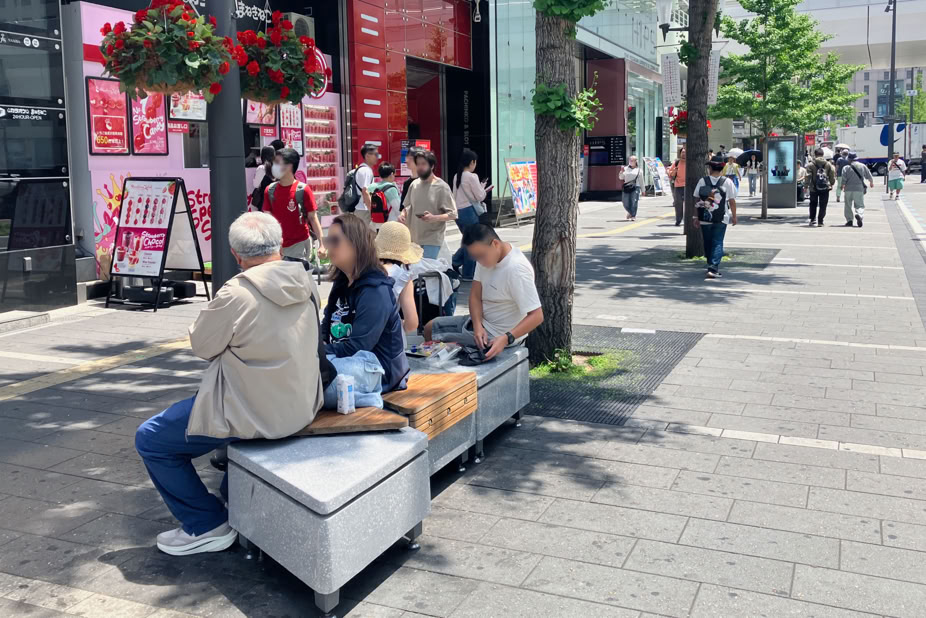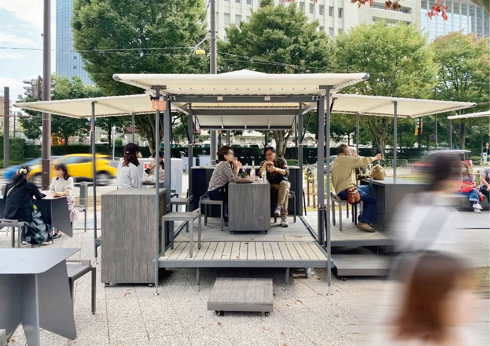 また「御堂筋チャレンジ」という社会実験での数年に及ぶ配置検証や、維持管理の区分を明確にするパーツ構成、いたずら対策、都市景観との調和なども検討し、常設ながら心地よい滞留空間を御堂筋で実現しました。