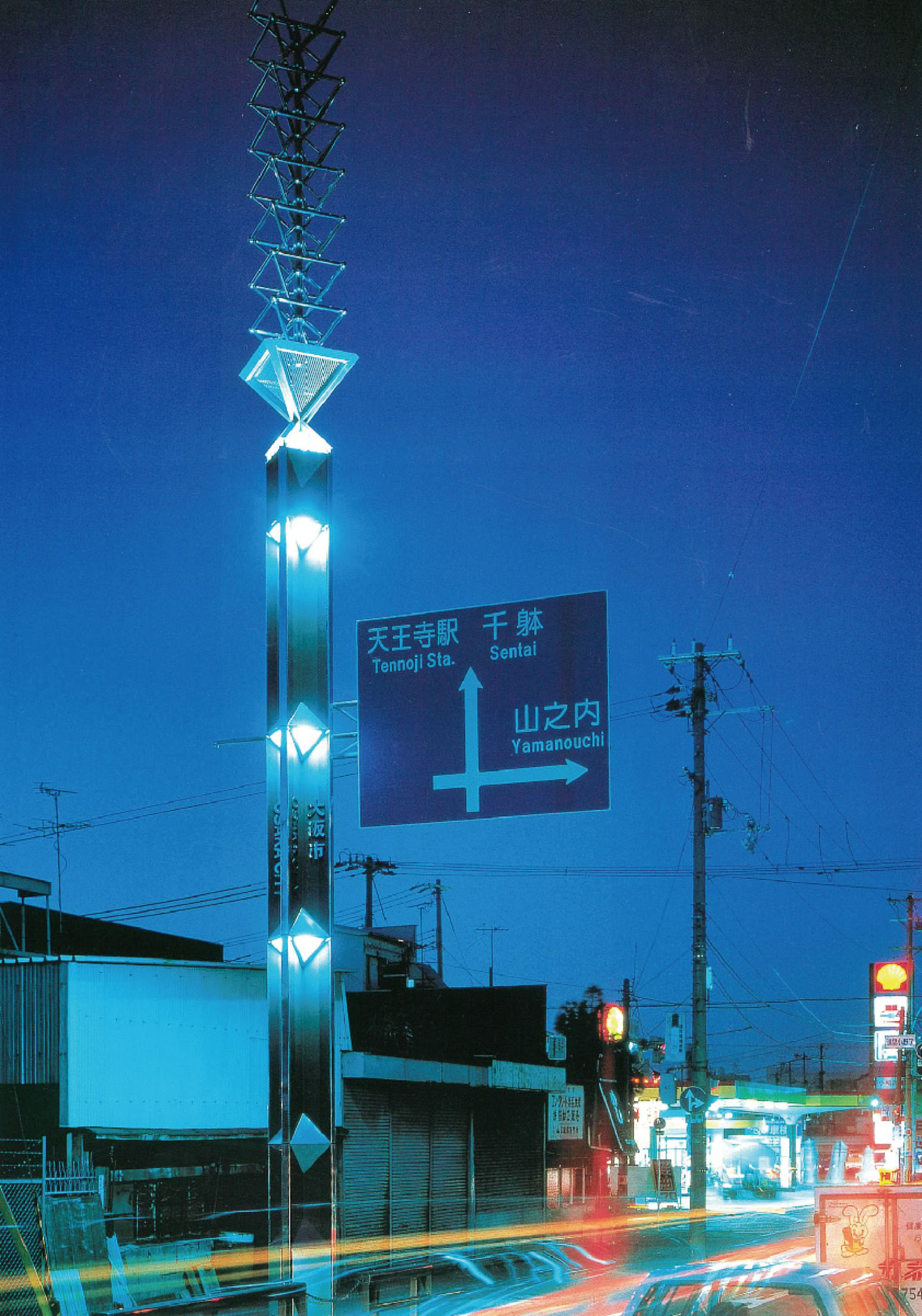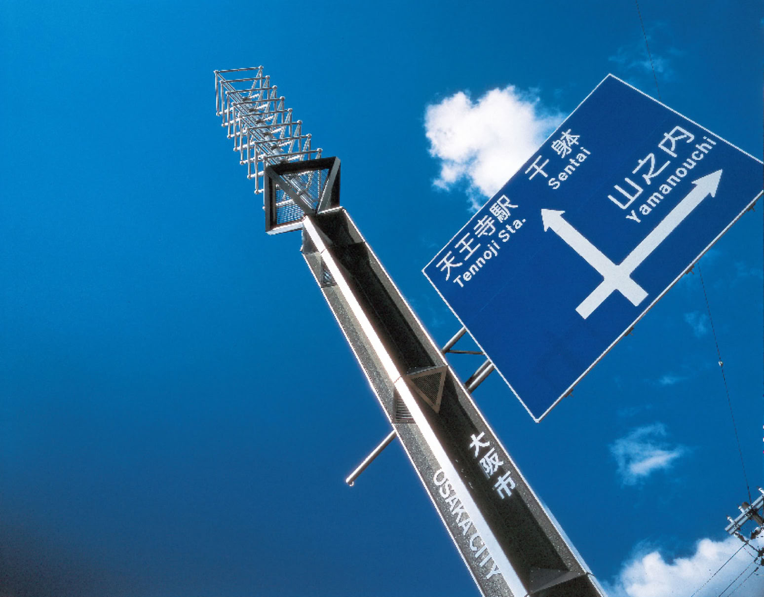 Osaka sign towers were planned as a guidance for the traffic and an entrance sign of the city, following the improvement plan of guidance signs for pedestrians in Osaka city which started in 1981.