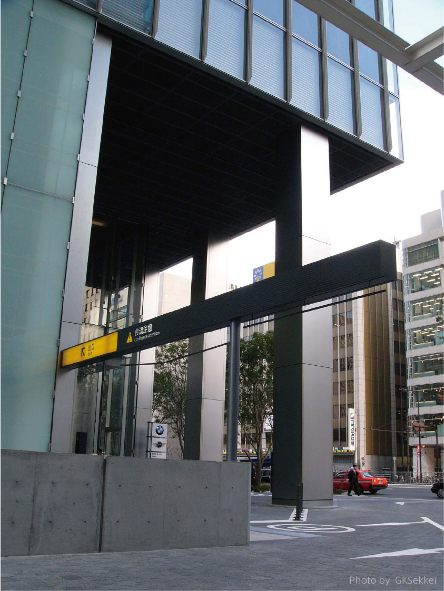 本サイン計画では、南北に細長い敷地に対して案内、誘導サインやバス案内サインを計画し、交通結節点としての案内機能を充実させるものである。また、本計画と平行して、地下駐車場のサイン計画も担当した。