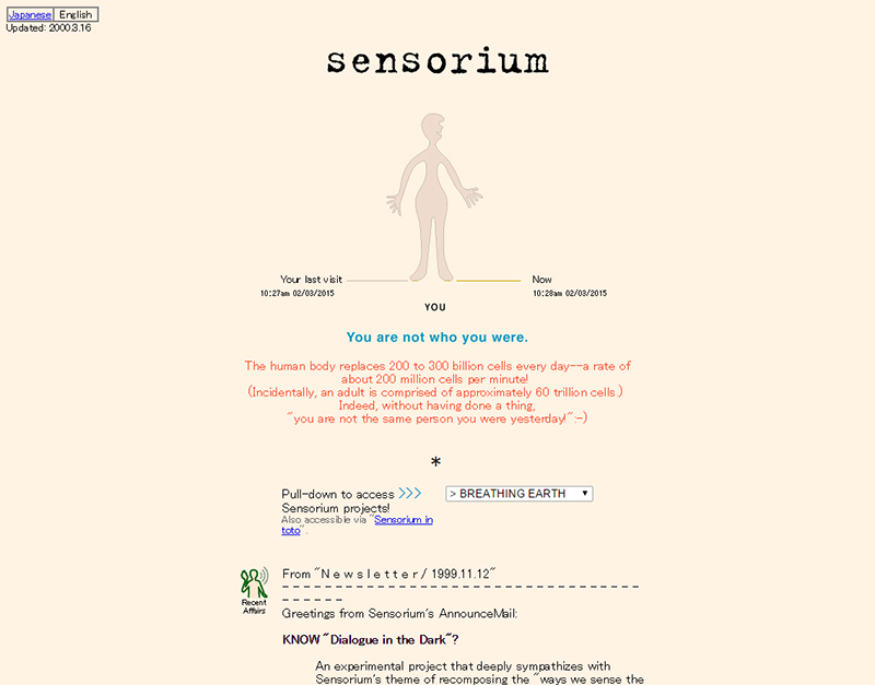 IWE'96日本テーマ館センソリウムのコンテンツ。インターネット上で収集できるリアルタイムの地震データの視覚化に挑戦した。母なる地球が、いかに常時活発に動いているかを実感させるかという表現に知恵を絞った。