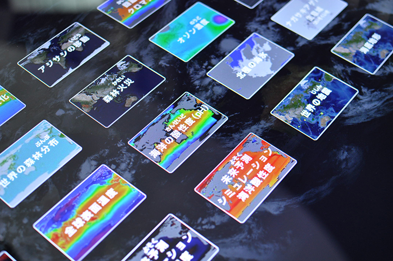 Geo-Scopeは国内外の地球観測データをタッチ操作で探索するインタラクティブボード。